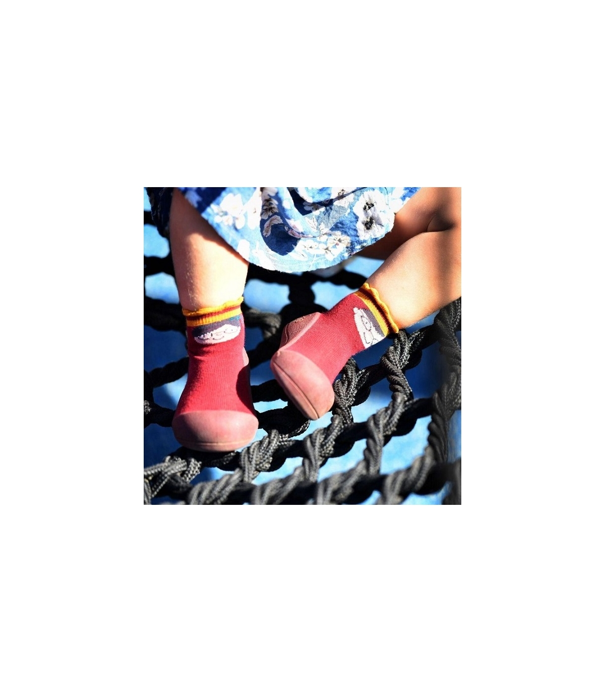 Attipas se ajusta completamente al pie del bebé otorgándole así una completa flexibilidad y adaptabilidad tanto en suela como en la parte del calcetín.