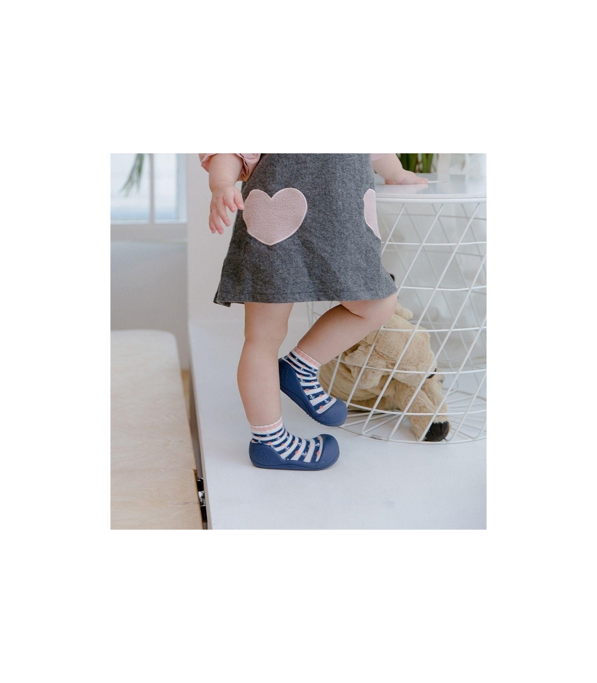 Attipas se ajusta completamente al pie del bebé otorgándole así una completa flexibilidad y adaptabilidad tanto en suela como en la parte del calcetín.