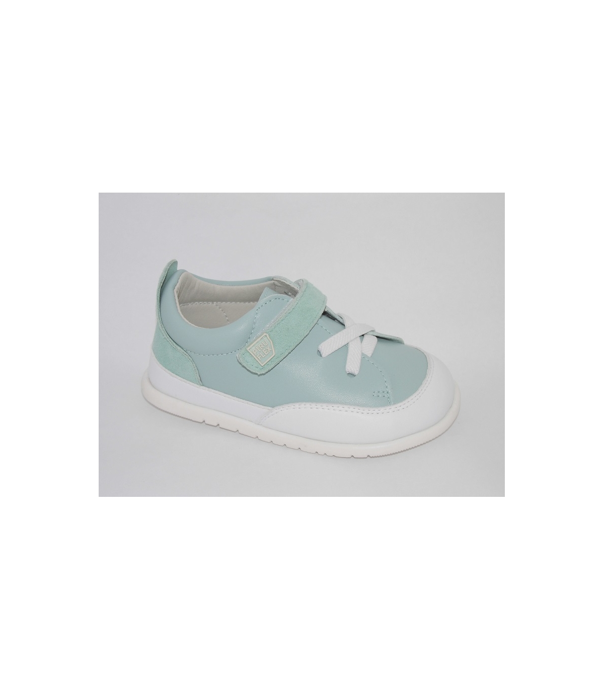Zapato deportivo combinado verde-agua caribe con blanco PIRUFLEX.