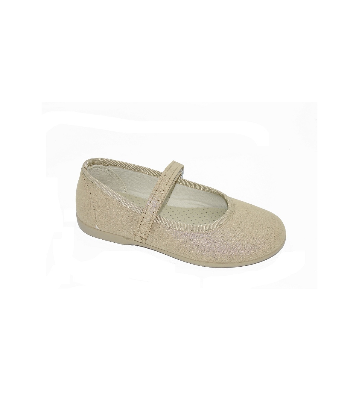 Zapato de niña metalizado camel con correa.
