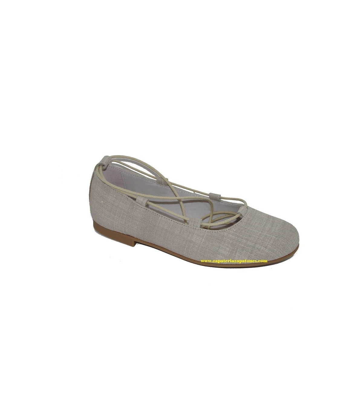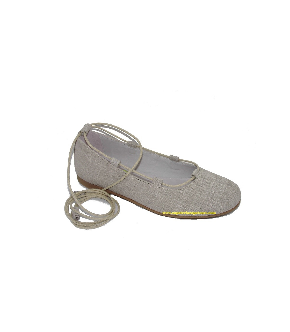 Con cordón al tono alrededor del pie, y atado al tobillo.