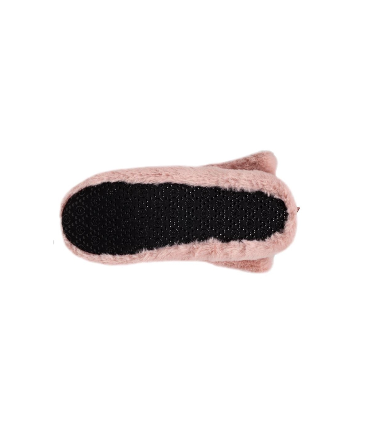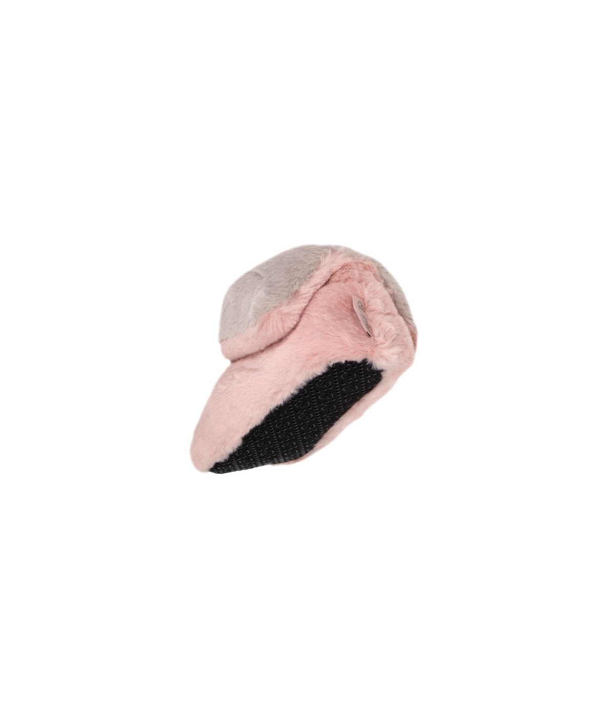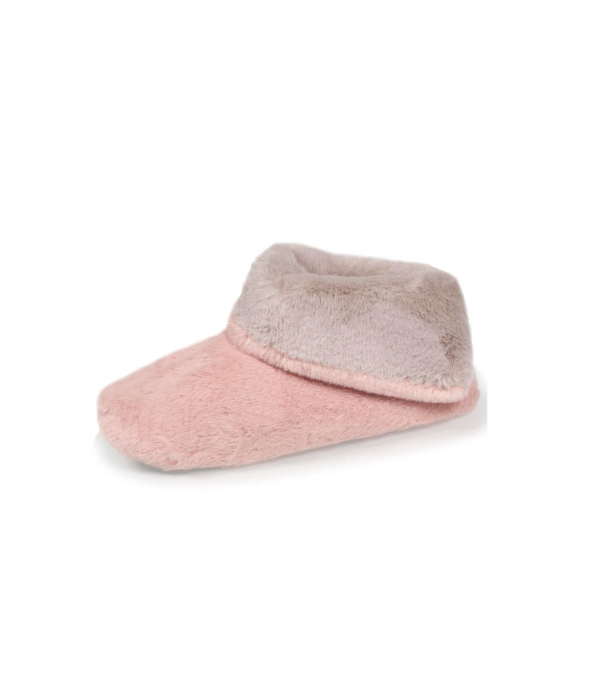 Zapatillas de casa tipo botín en pelo rosa y gris plegables.