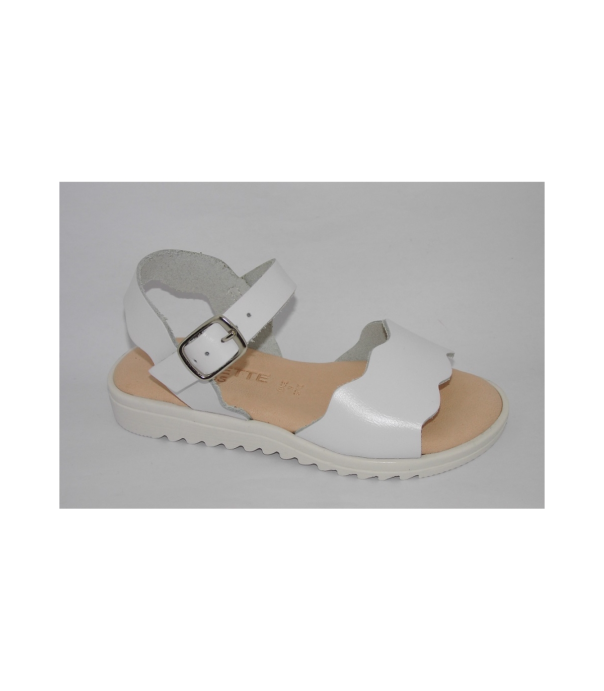 Sandalia descubierta de niña en piel blanco.