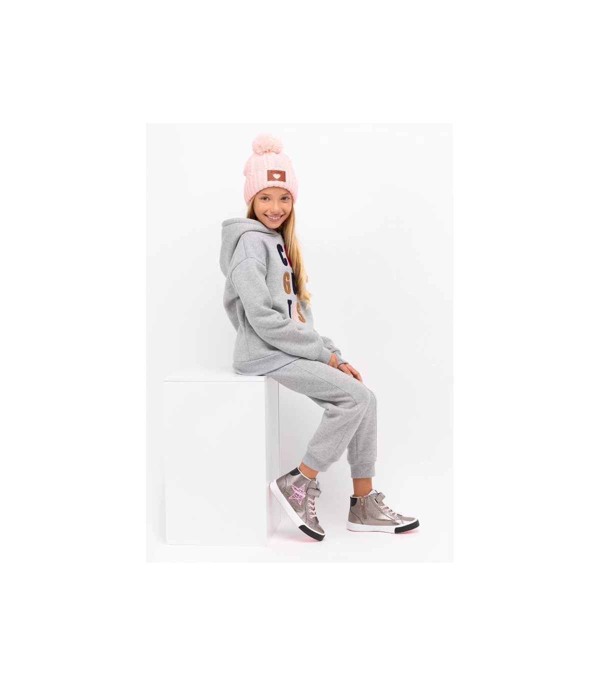 Zapatillas de bota gris plomo con estrella en purpurina rosa en el lateral.