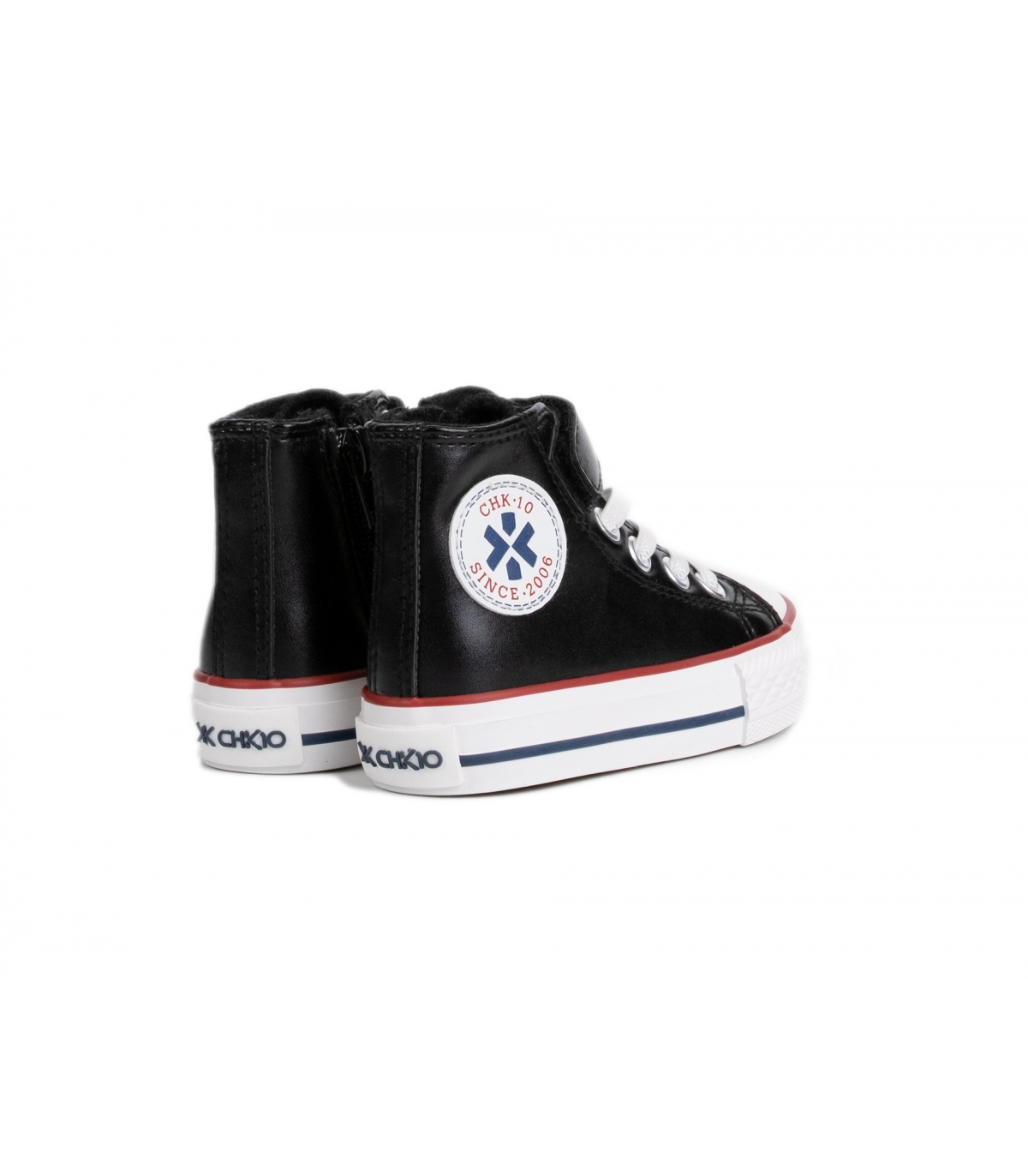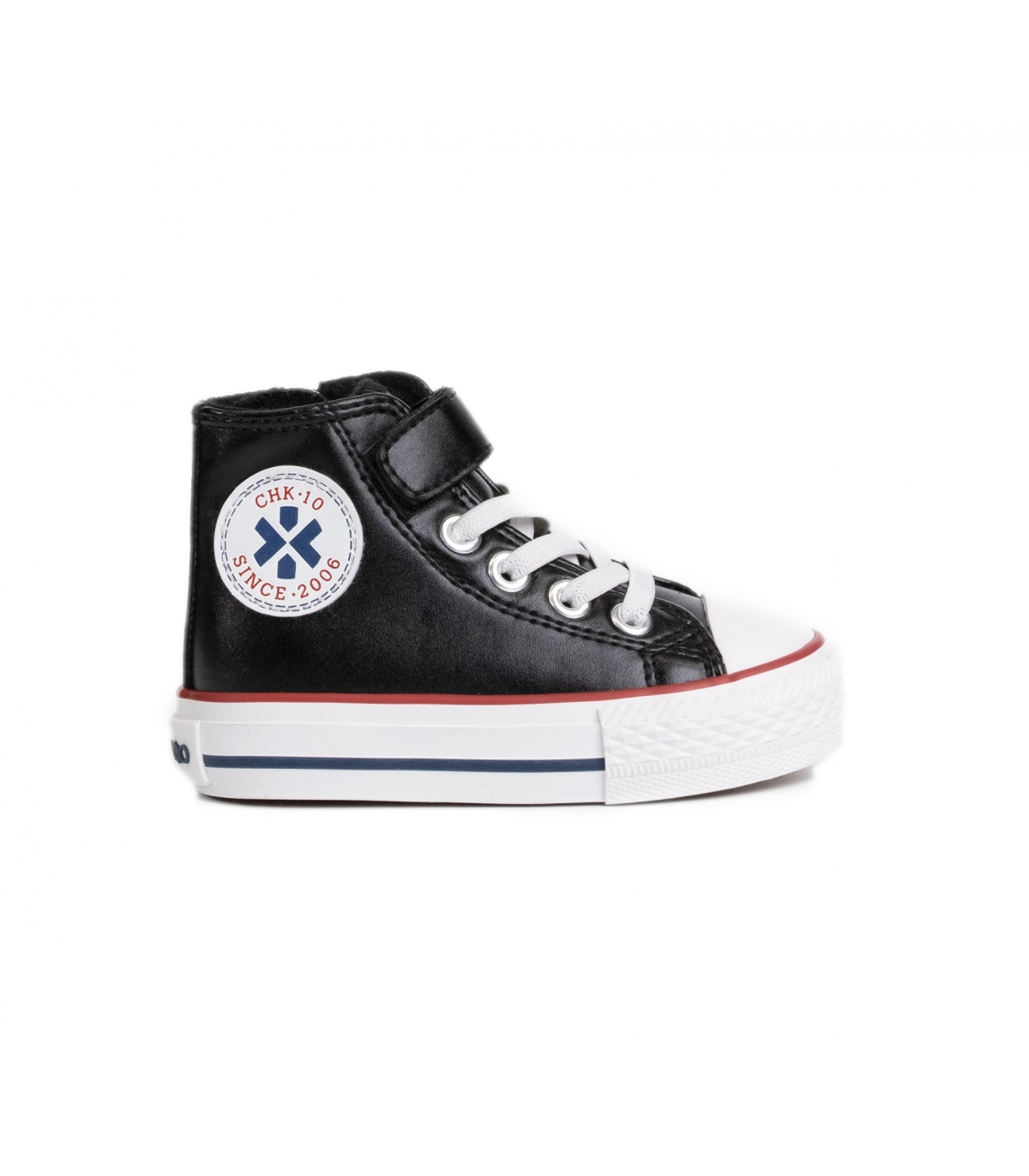 Zapatilla tipo bota en polipiel negro.