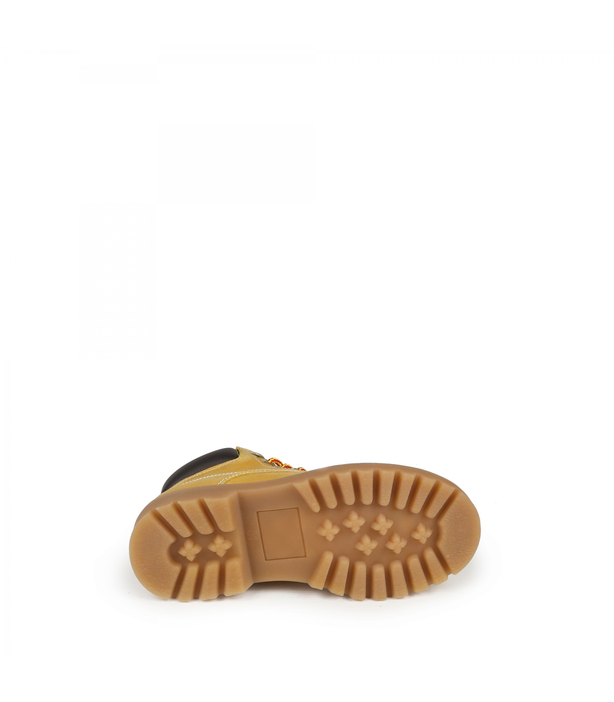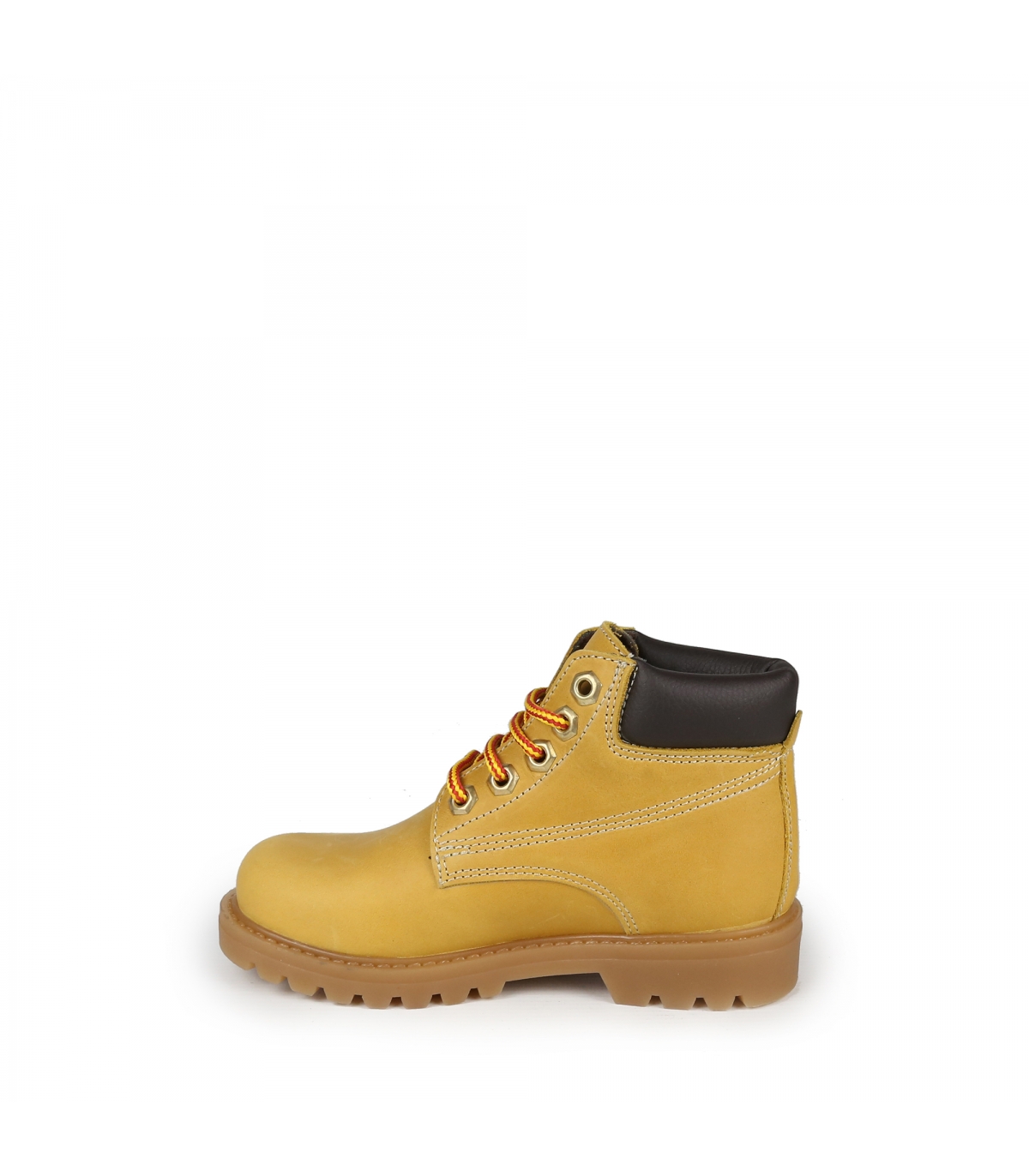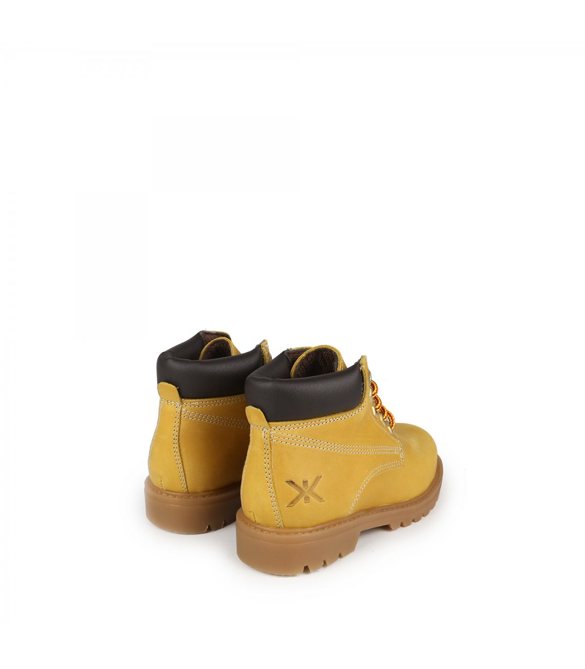 Cierre con cordón bicolor y cuello marrón acolchado.