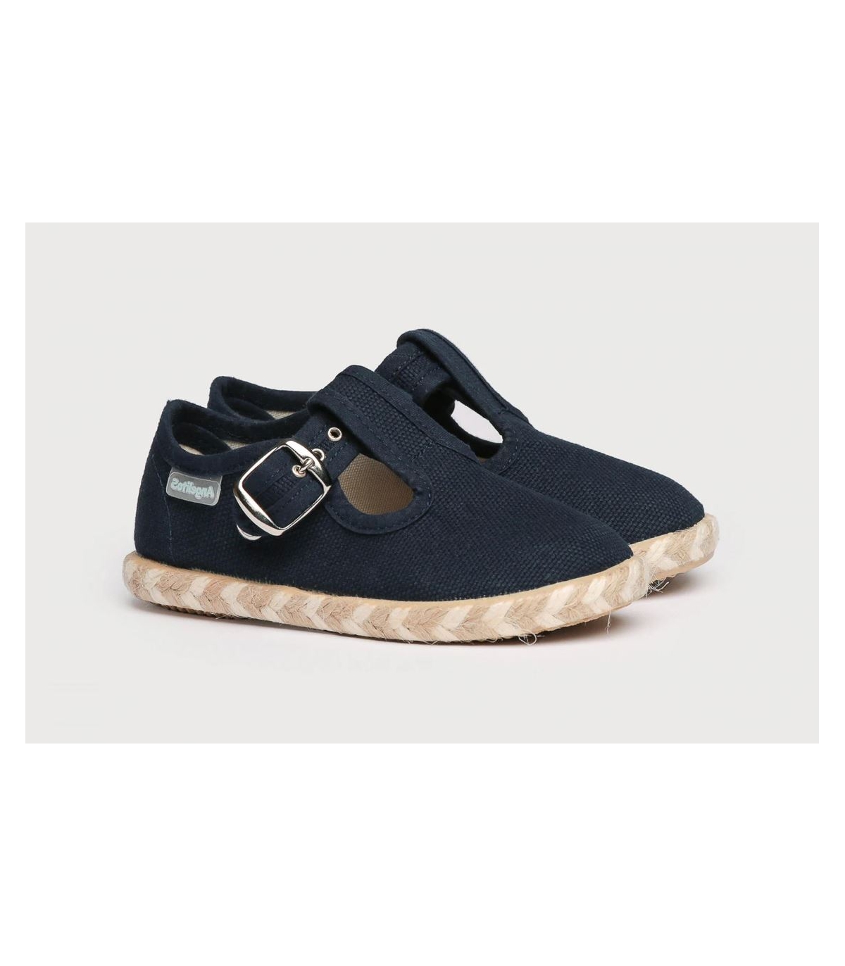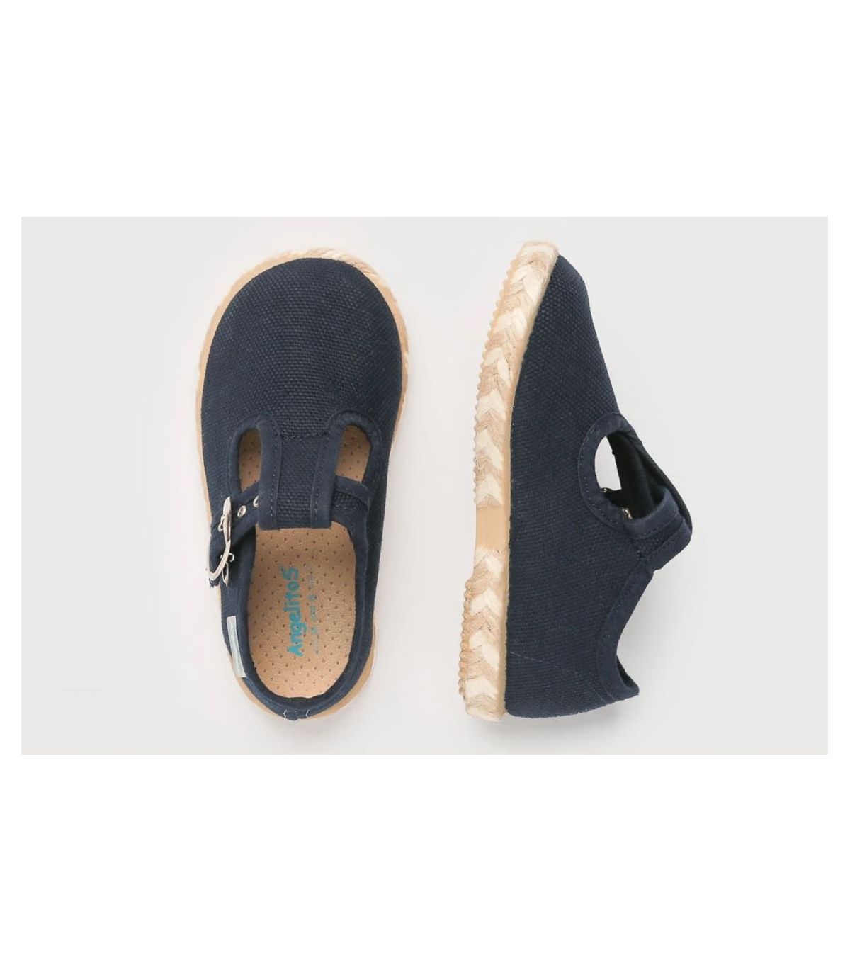 Lona esparteña en lino marino con esparto trenzado en la suela.