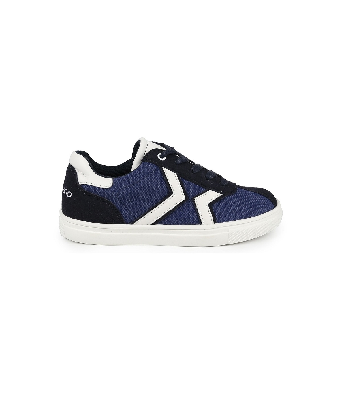 Zapatilla de lona azul marino.