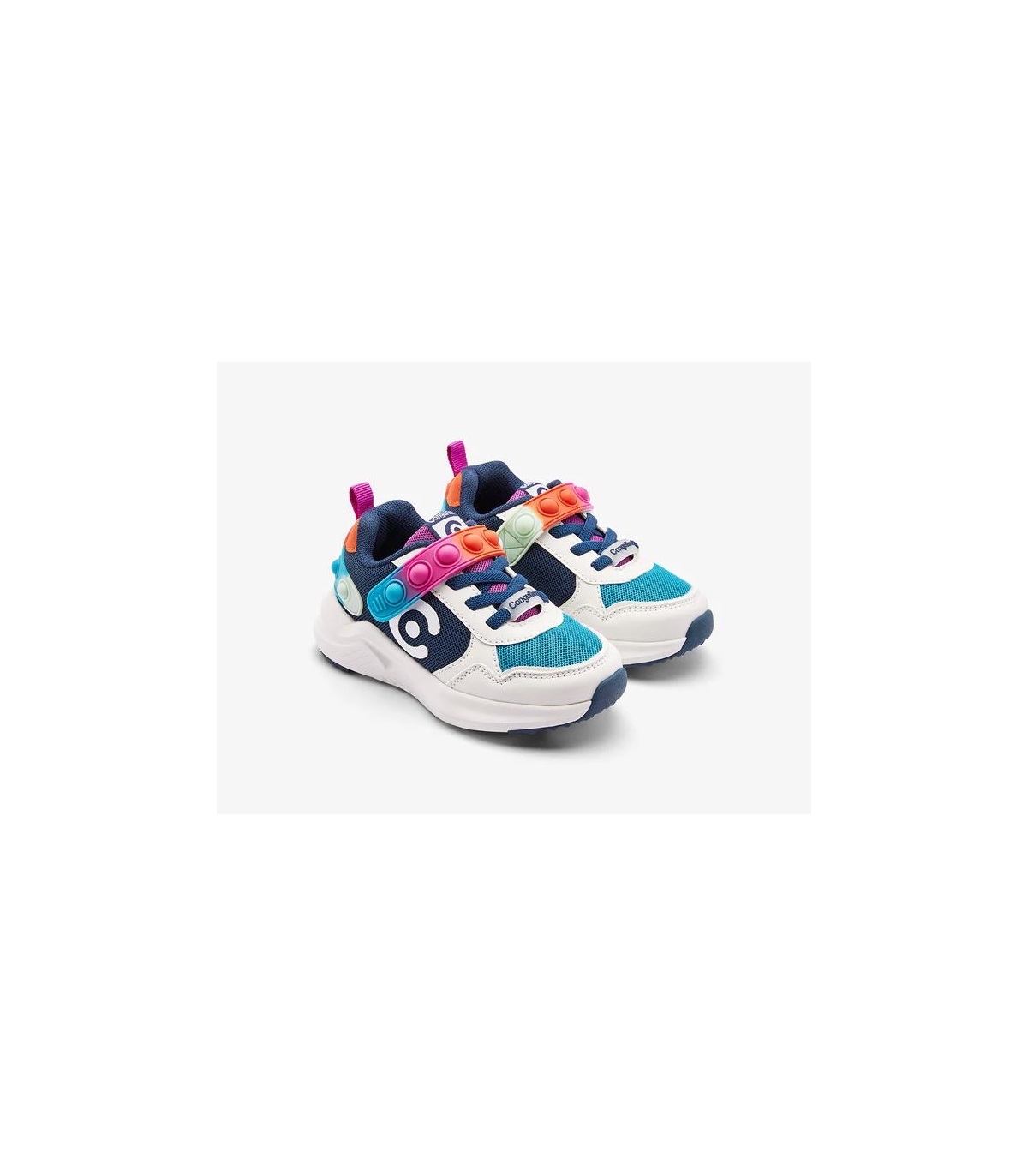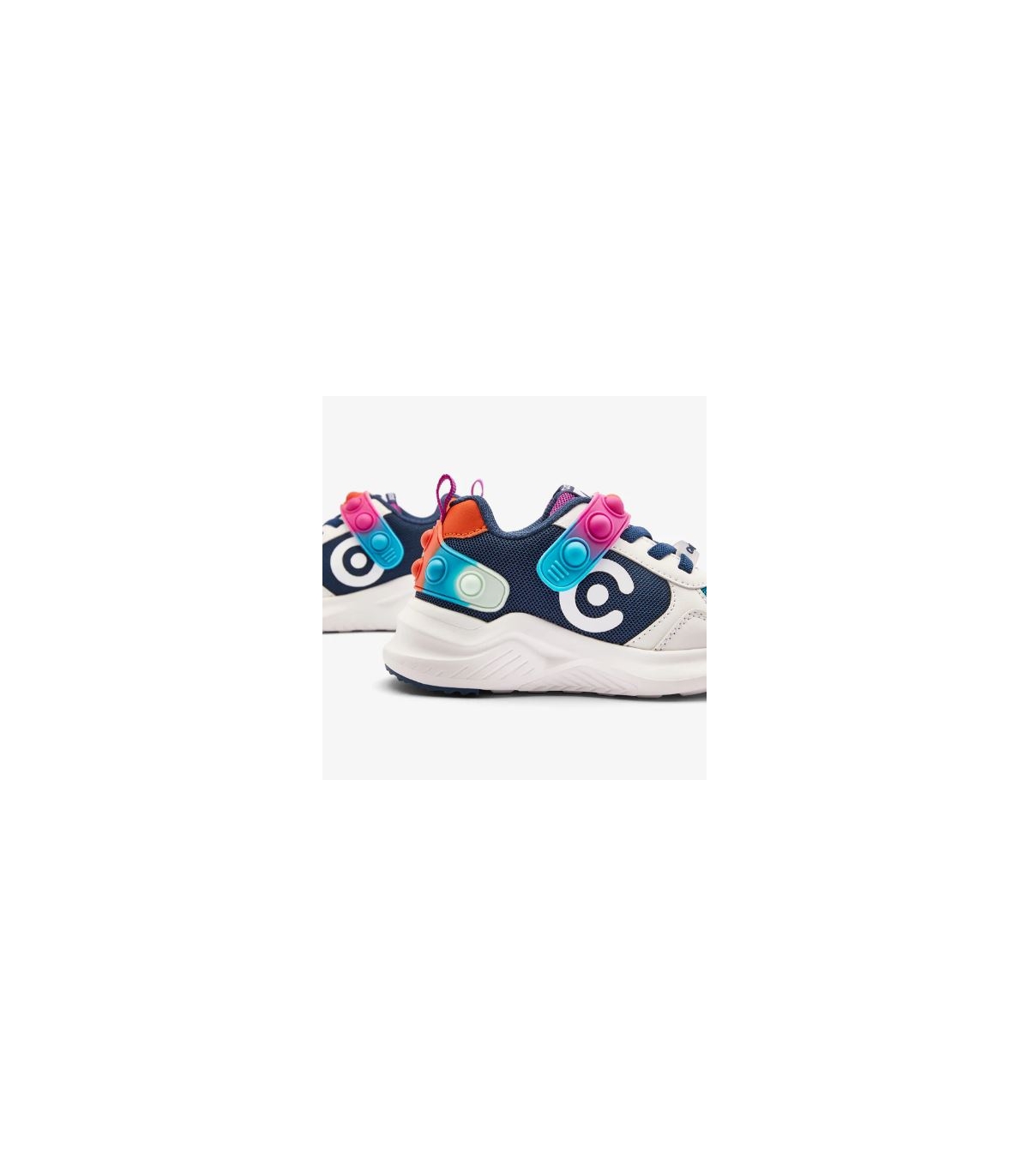 Zapatillas POP combinadas en blanco, azul marino y multicolor.