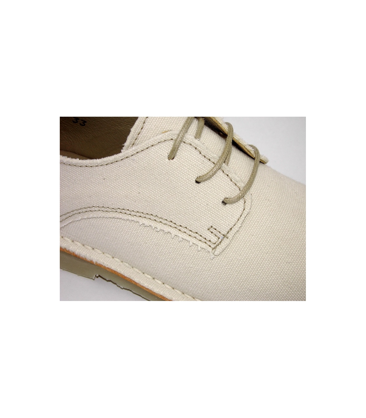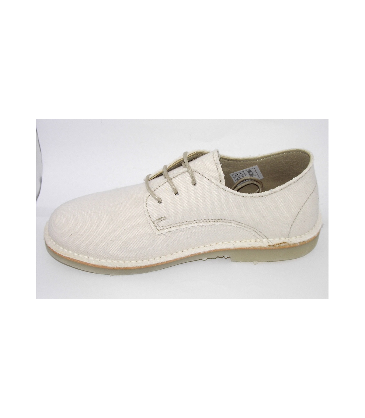 Zapato en lino beige con cordones.